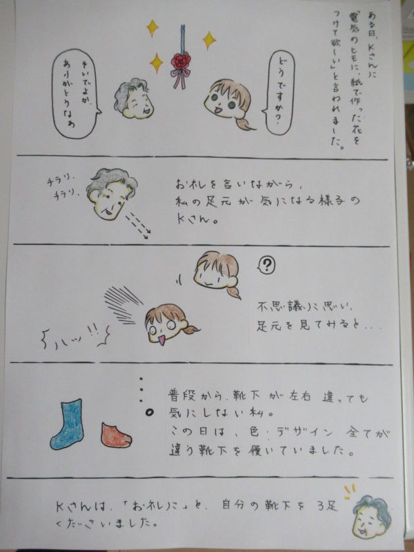 Kさんは,「こや新品やっで」「こやもう履かんで」と,3足もくださいました。