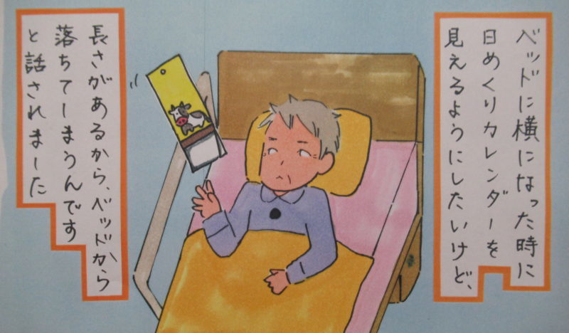 新年に向けて・・・ 2021.01.01スタッフの声 HOME introduce Tweet Share こんにちは。 まごの手です。 今回は,すでに新年を迎えてしまいましたが 12月半ば頃のTさんのお話です。 それでは,どうぞ~(^^) 短くした日めくりカレンダーは 「まだ数日あるから,まだ出しません」とのことで, 一旦,棚に置き 28日に改めてベッドに移しました。 少しづつ,新年を迎える準備をされたTさんでした♪ Tweet Share 投稿者: yoka_staffs スタッフの声 介護職のスタッフから選ばれる介護施設がスタッフ大募集! 職場環境や人間関係で悩まない! 基礎から介護を学べます。週休2日制・夜勤月6〜7回。仕事もプライベートも充実。未経験OK! 応募要項を見る ☆12月 満月☆ 迎春 関連記事一覧 ナンッ・アー・リン・ダーさん。 ~よかよかんに来てからの一年... 2022.05.26スタッフの声 ありがとうございます☆ 2021.11.28よかよかんの風, スタッフの声 挨拶の意味 2021.01.11スタッフの声 ☆深夜の出来事☆ 2021.10.04スタッフの声