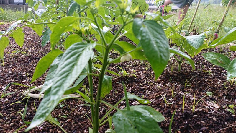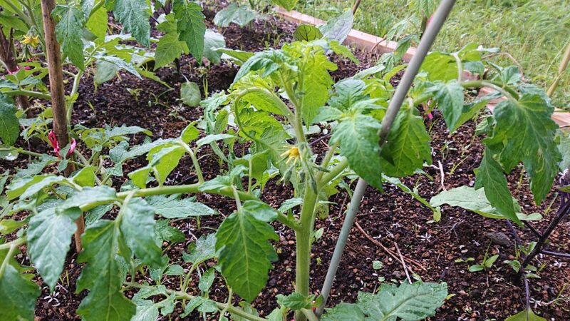 ピーマンやミニトマトの花が