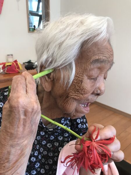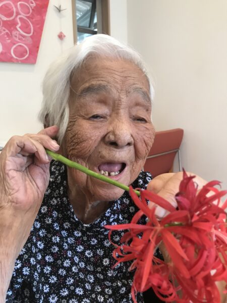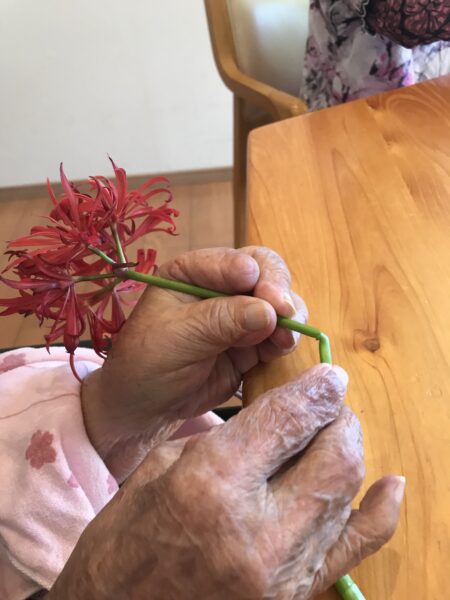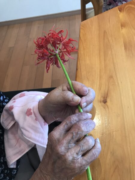 テーブルに彼岸花を飾ることで昔を思い出され、昔話で利用者、職員との会話も弾み、笑顔という花も咲き誇りました(*^▽^*)