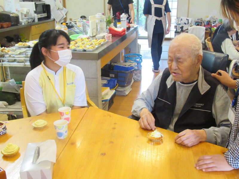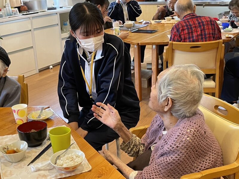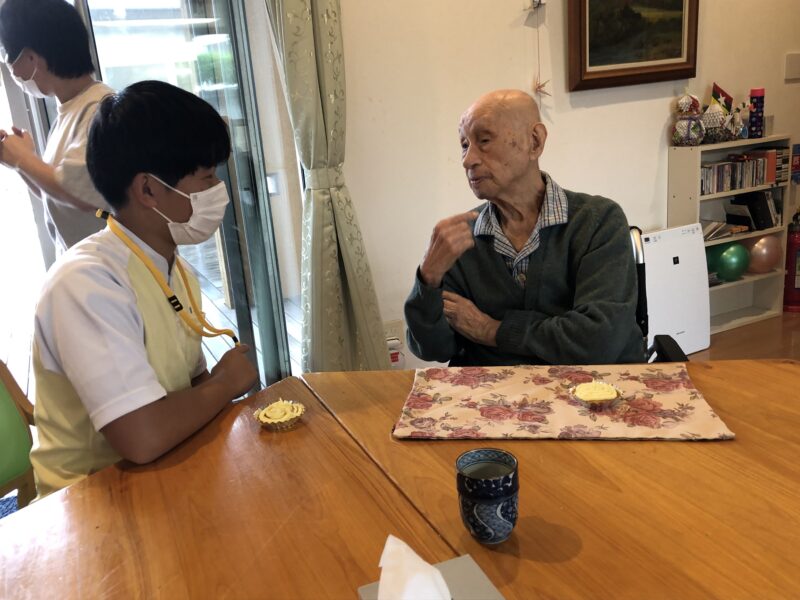 自己紹介をしたり、好きな食べ物を聞いたり。何を話そうかな…と緊張しながらも高校生は積極的に利用者様に言葉をかけており、