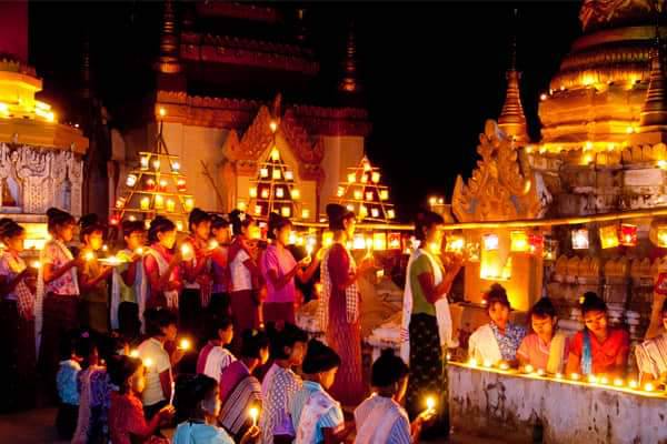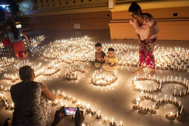 タザウンダインのお祭りでは、家族と集って旅行したり、お寺へ行ってロウソクを使い、それを並べて願い事をします。