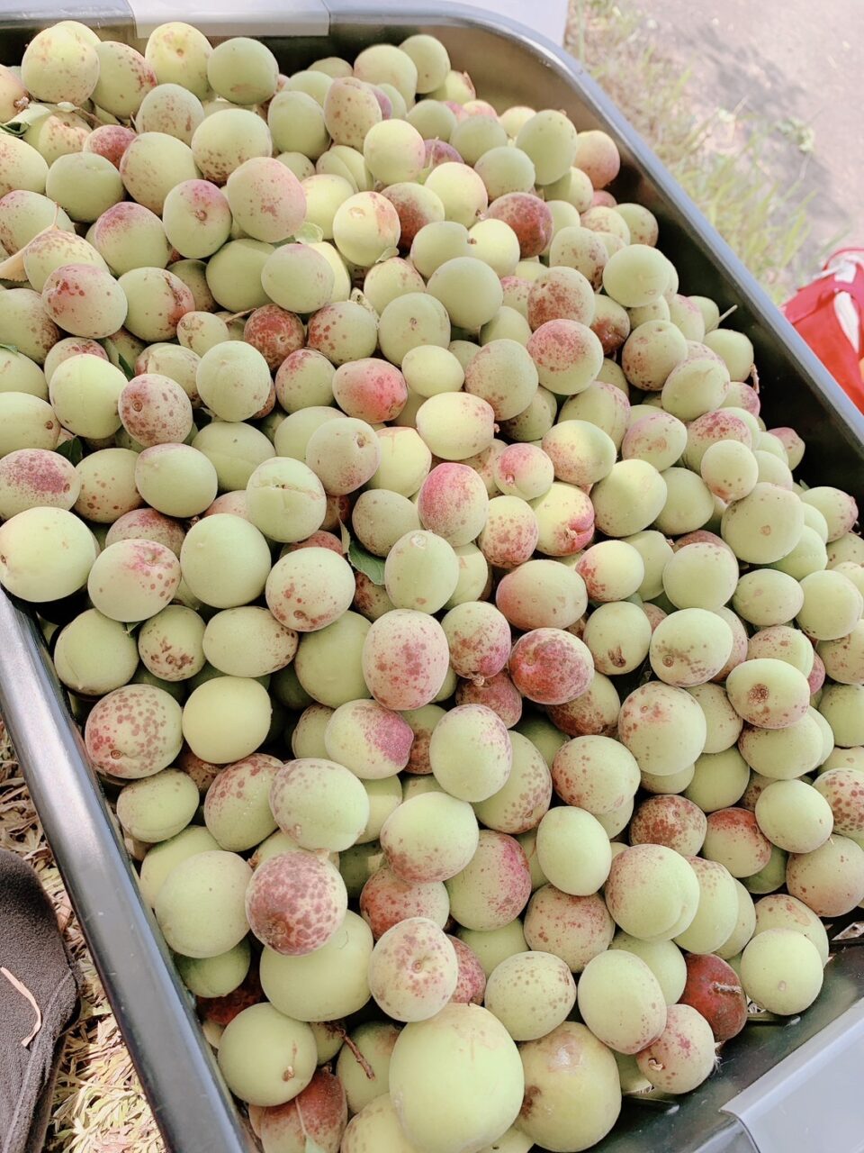 落ちてくる梅に当たらないように気を付けながら、マムシに気を付けながら