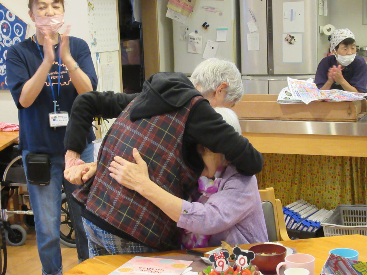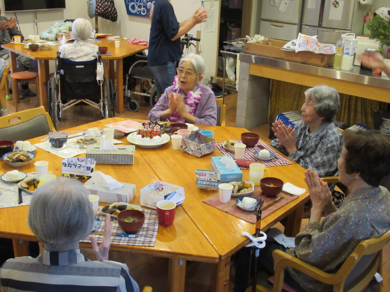 食堂に入り、利用者様の「お誕生日おめでとう」の言葉に