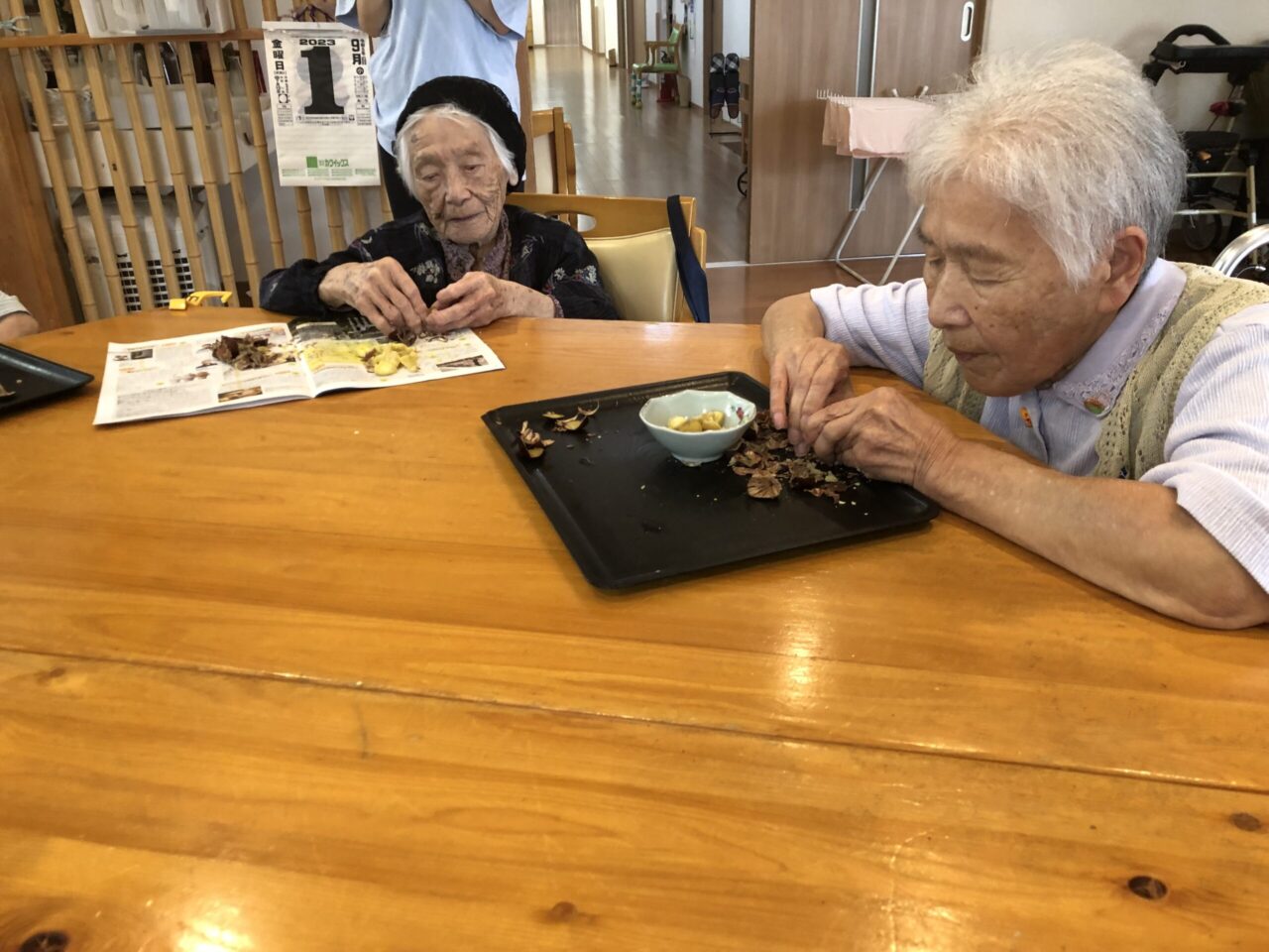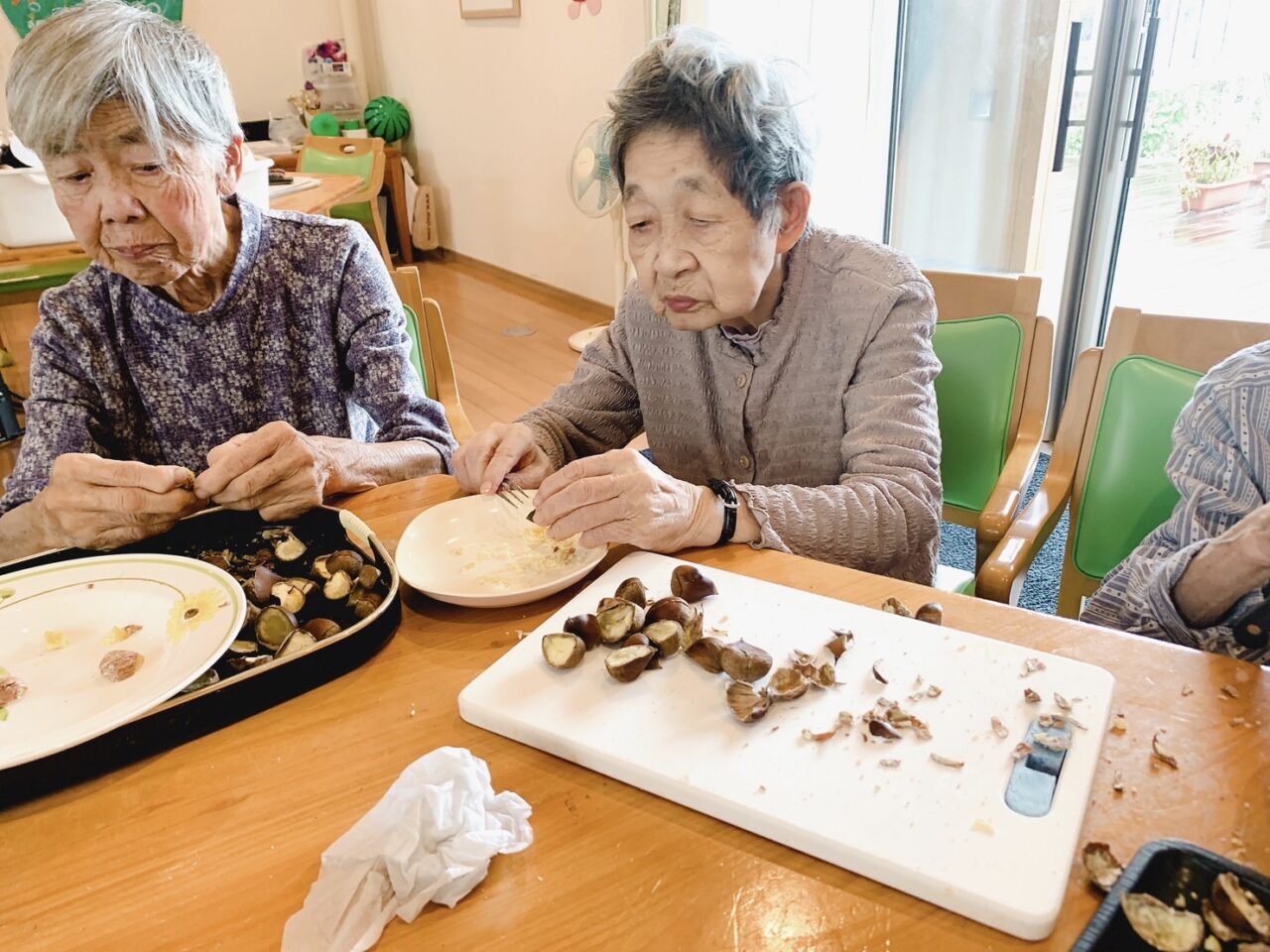 時には、剥いた栗がそのままお口に入り「おいしか」とにっこりのS様とK様(*^^*)