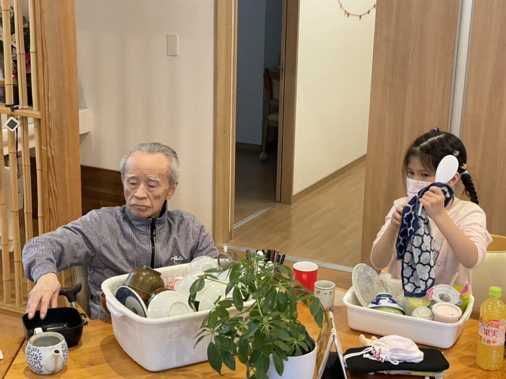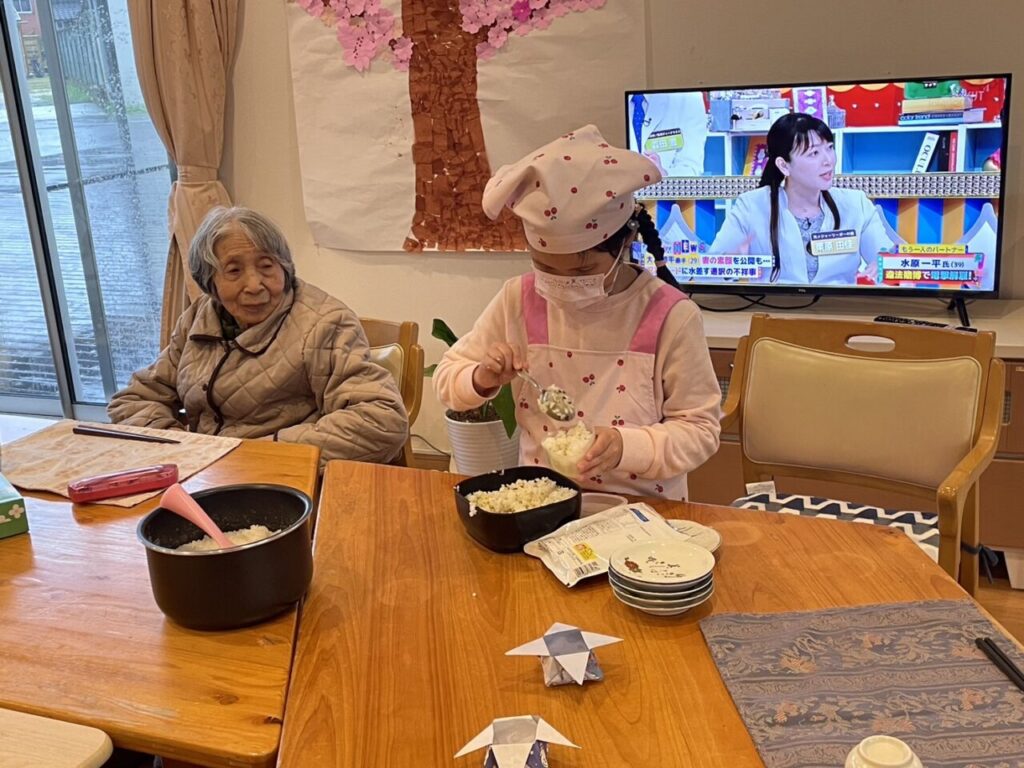 職員のお孫さんが一週間よかよかんへ🌸お昼ご飯の調理も利用者様と一緒に手伝いしてくれました♪利用者様達も「感心じゃんね〜!」と一生懸命な姿や無邪気さにほっこり😊