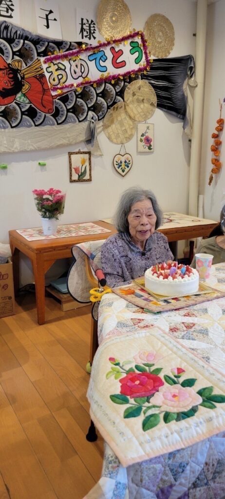 この多くのパッチワークの作品は娘様がO様のお誕生日会に持って来て下さった物です。