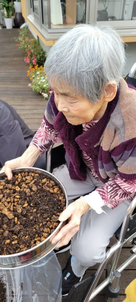 職員「Tさん、GH(グル―プホーム)で花植えをするそうですけど、お手伝いに