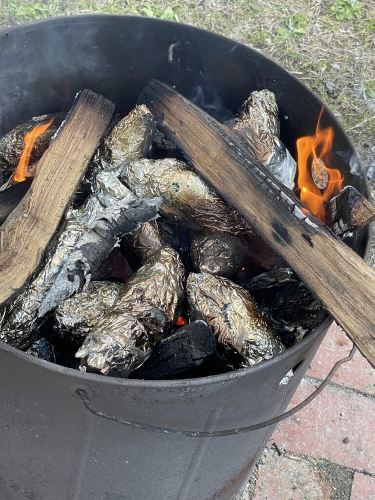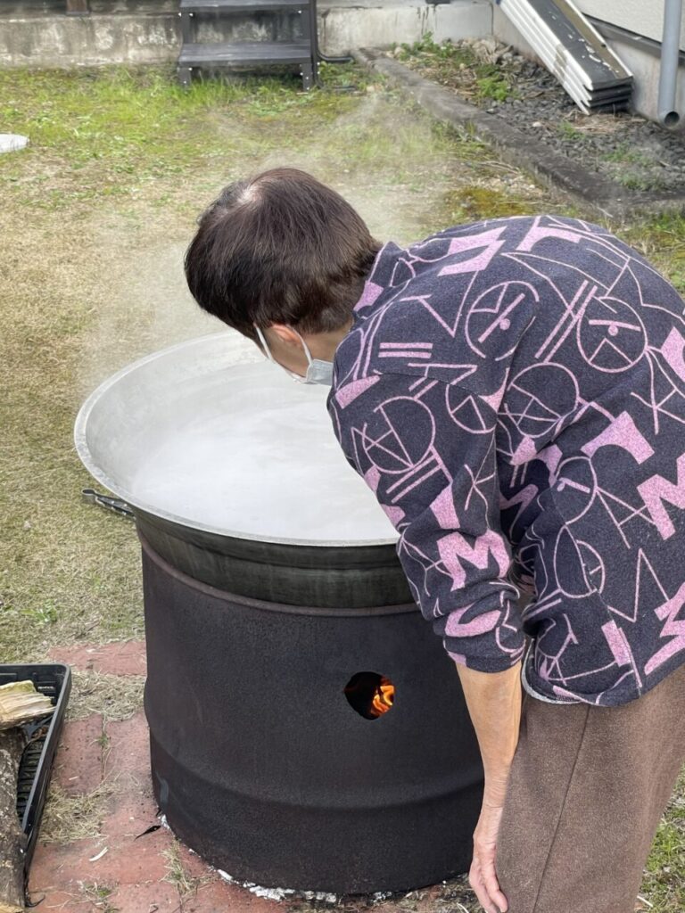 その時、ある利用者様が「芋もいっどき焼けばよかとこれ」の一言から、芋も一緒に、、、。急遽焼き芋も開始です✨