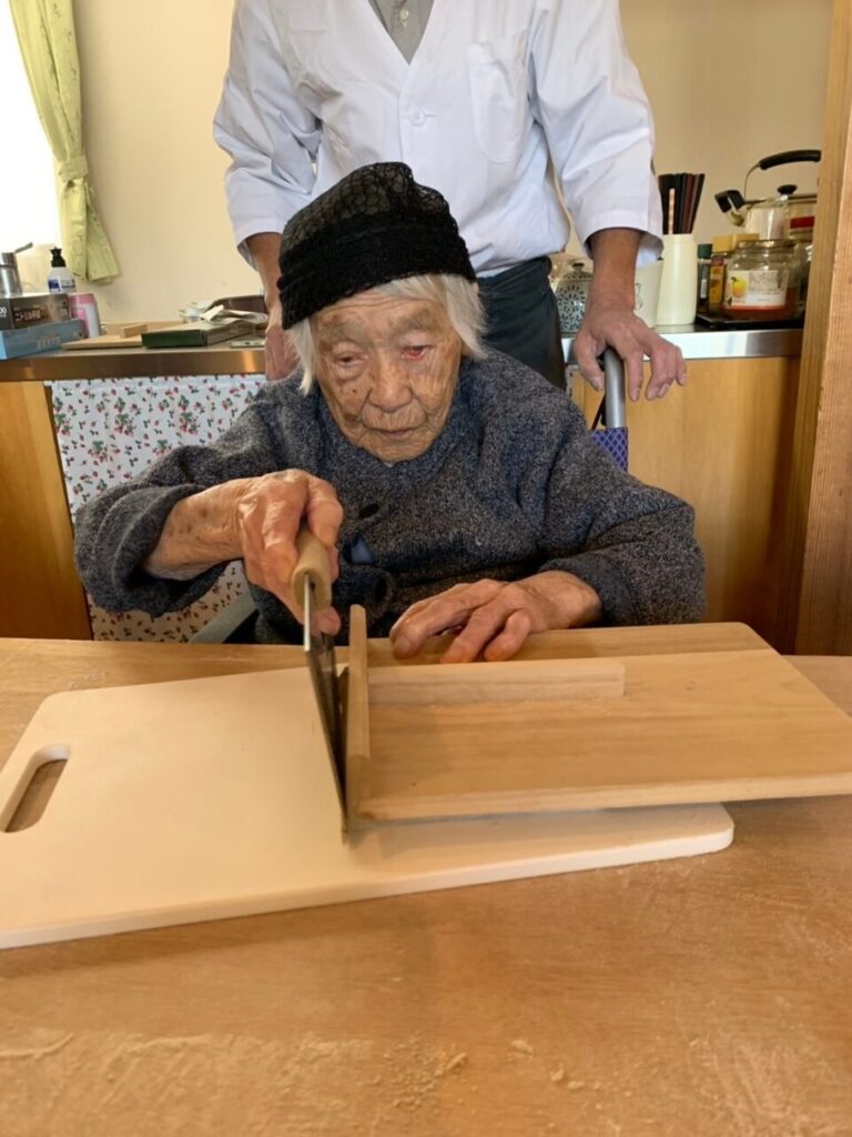 そばを切る時は、利用者様にお手伝いを頂きながら、一緒に切りました☻