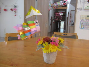 そこで、よかよかん小規模では「今年は、大きな鯉のぼりを作って泳がせようか」と言うことになり