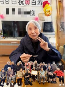 N 様は100歳、いつも周りの人たちに温かくしてくださり、いつも笑顔で冗談を言われ、周りの人達を笑わせてくれる、元気で優しい方です😍