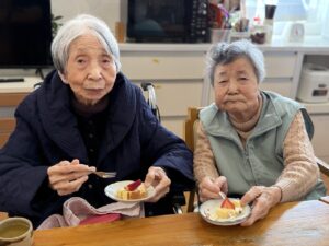 N 様の100歳のお誕生日は よかよかんの皆様と一緒に踊ったり、歌ったり、ケーキを食べたり、ジャンケンしてお菓子をいただいたりして 楽しく過ごしました。🎉