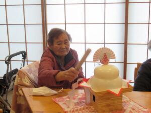 1月11日朝 飾ってあった鏡餅を叩きます。